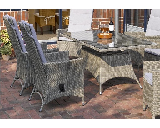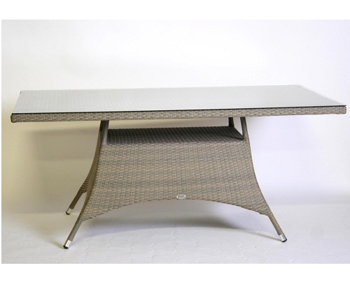Стол «Carlos» - прекрасный вариант для оформления больших террас с зоной барбекю. Стол имеет очень прочный алюминиевый каркас, который образует устойчивую конструкцию, выполненную из ротанга в сером цвете. Модель имеет прямоугольную столешницу с закаленным стеклом, установленную на очень изящную подставку с небольшой полкой.