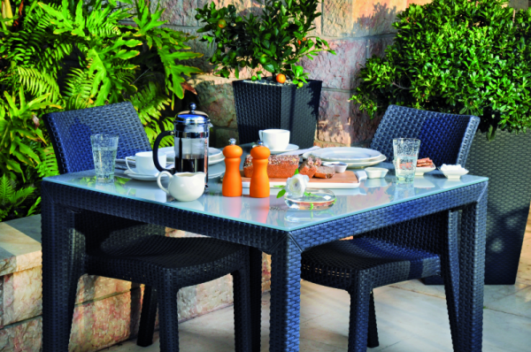 Элегантный стол «Keter Sumatra Table» оснащен мощной стеклянной столешницей, выполненной из 8 миллиметрового ударопрочного стекла. Стол обладает небольшими габаритами, поэтому его можно легко переставить в другое место. Каркас модели выполнен в изысканной темной фактуре. Сочетание стекла и плетеного корпуса визуально облагораживает гарнитур.