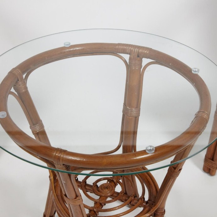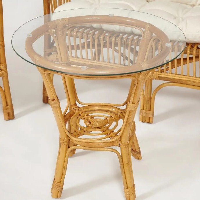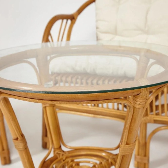 Размер: 90x120x76 см. Каркас: алюминий, в комплекте стекло закаленное 6 мм, плетение ажурное 7-10 мм, штабелируемый.
