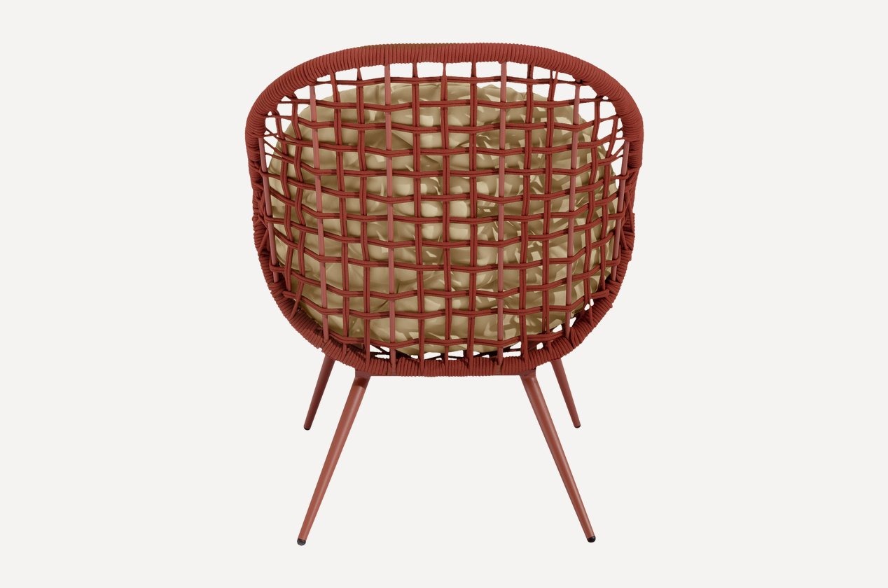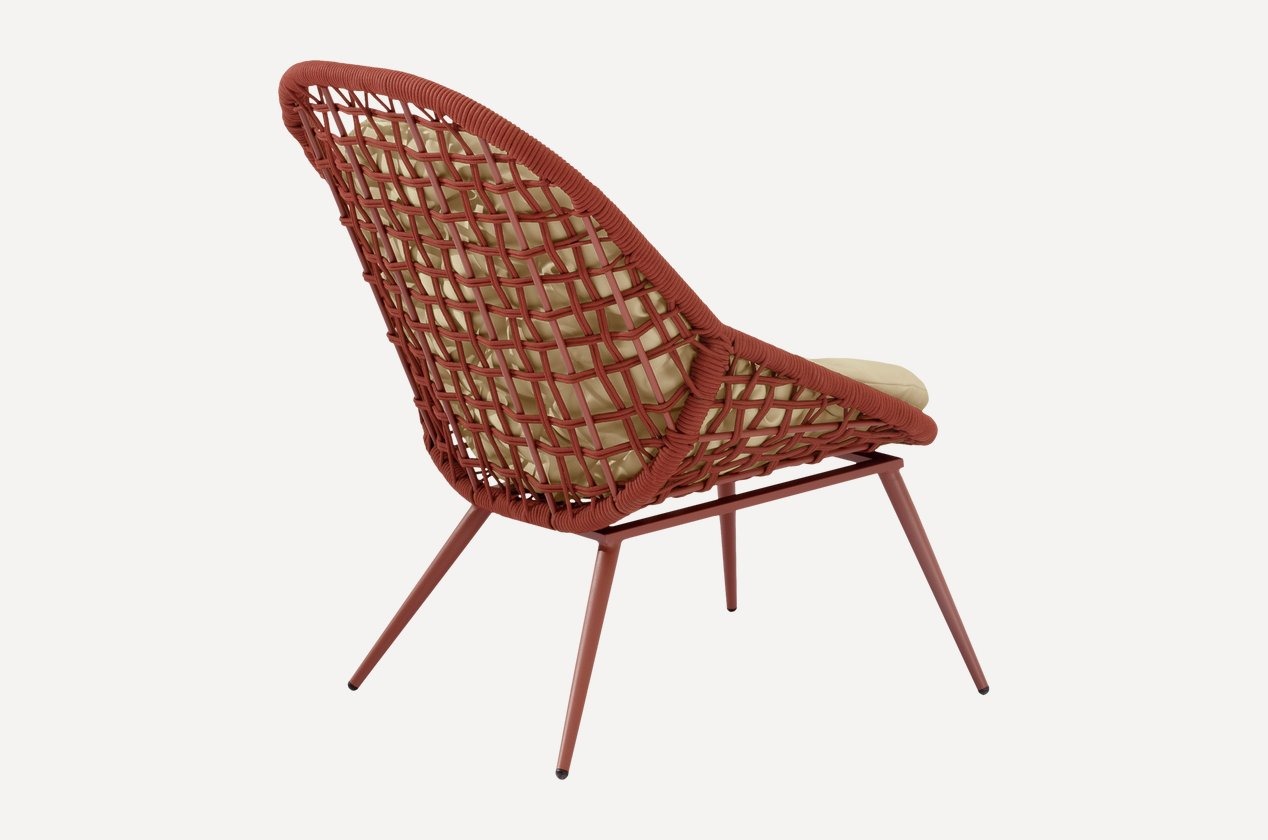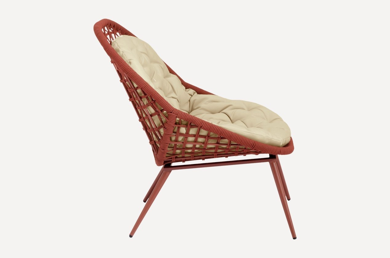 Размер (ШхВхГ): 58x65x95 см. Каркас: алюминий, в комплекте подушка, плетение ажурное 7-10 мм, штабелируемый.