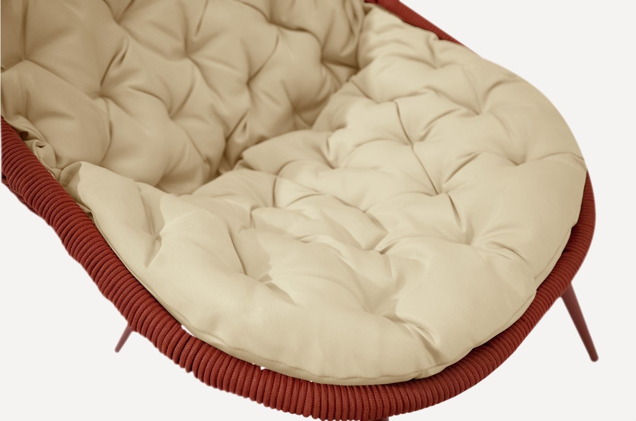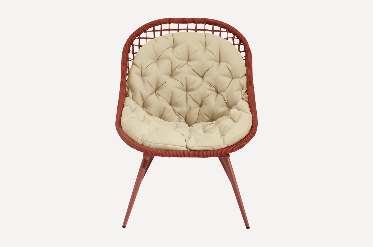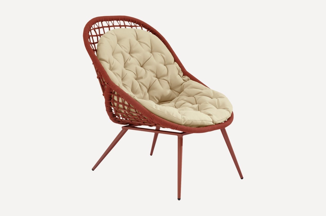 Размер (ШхВхГ): 58x65x95 см. Каркас: алюминий, в комплекте подушка, плетение ажурное 7-10 мм, штабелируемый.
