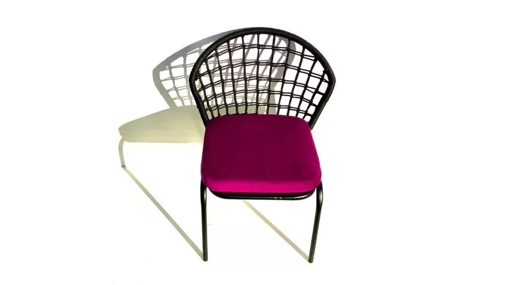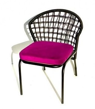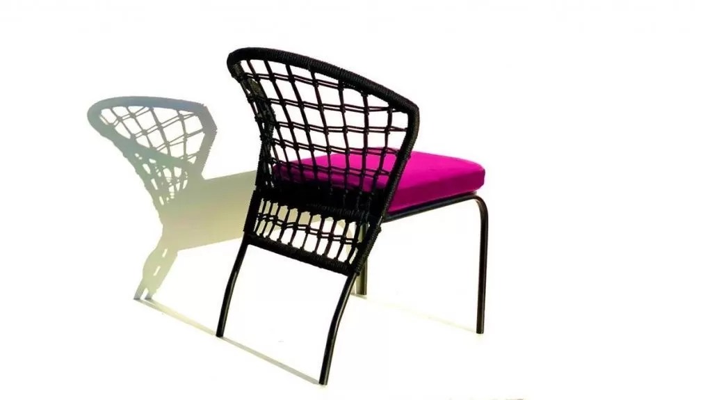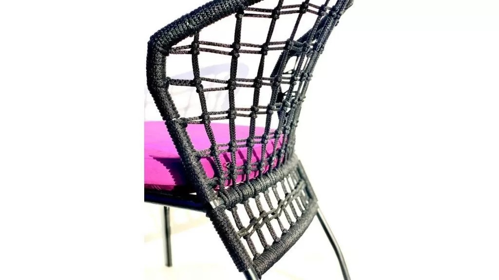Спинка стула оформлена декоративным плетением из джутовой веревки толщиной 6 мм, подбираемого в цвет каркаса.