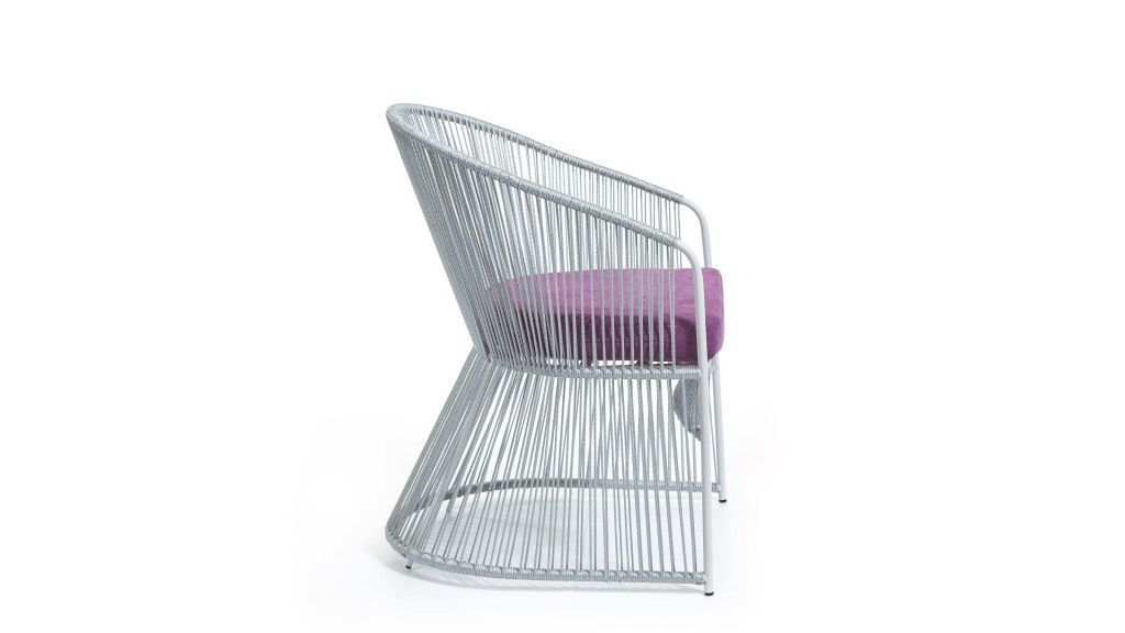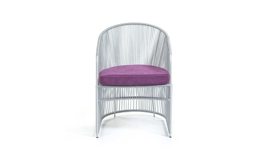 Спинка и подлокотники стула оформлены декоративным плетением из джутовой веревки толщиной 6 мм белого цвета.