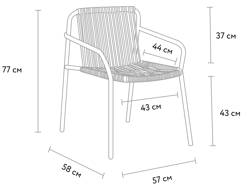 Размер (ДхШхВ): 57х58х77 см. Материал: металл, роуп, ткань.