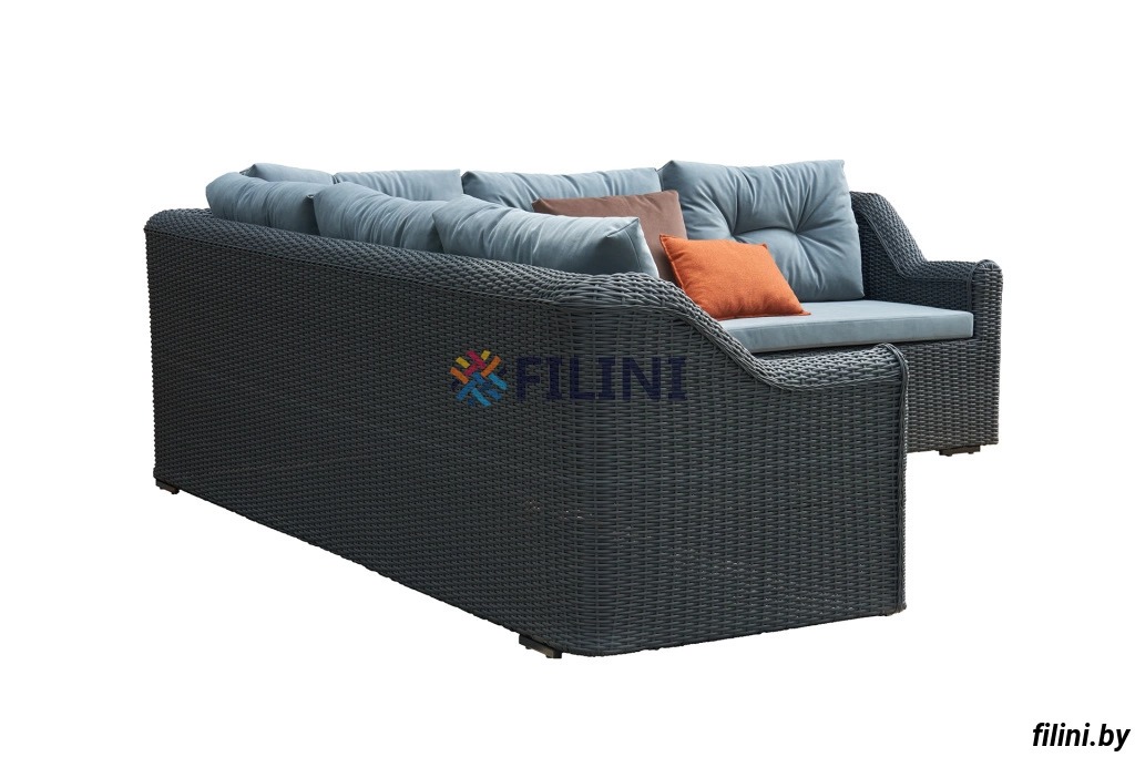 Искусственный ротанг собственного производства, из которого изготовлен диван, обладает высокой прочностью и не подвержен воздействиям окружающей среды, что делает его идеальным выбором для использования под открытым небом.