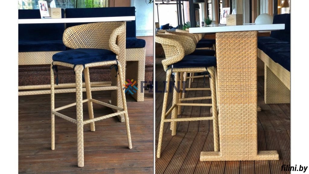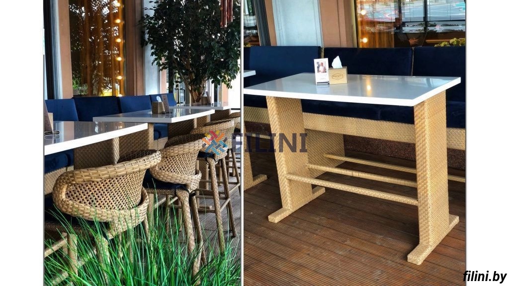 - искусственный ротанг собственного производства устойчив к длительному воздействию атмосферных осадков и ультрафиолета, резкому перепаду температур, не подвержен плесени и со временем не выцветает на солнце, легок в уходе;