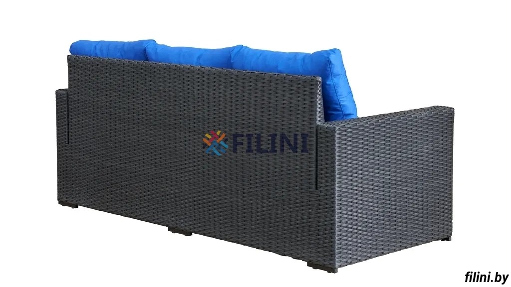 Каркас дивана изготовлен из профильной трубы 20*20 мм толщиной стенки 1.2 мм, с нанесенным на него полимерным покрытием, предотвращающим появление коррозии, в процессе эксплуатации, оплетенного лентой искусственного ротанга собственного производства.