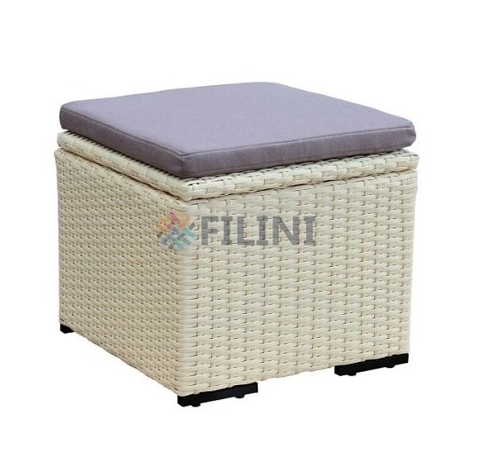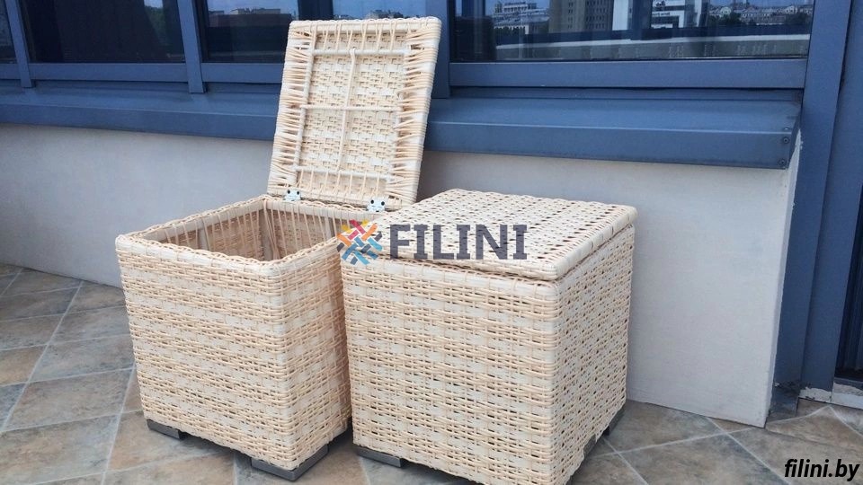 Квадратный уличный пуф из искусственного ротанга, с местом для хранения, из состава одноименной коллекции мебели "Березка" является весьма удобным и практичным аксессуаром для балкона, лоджии, террасы или веранды.