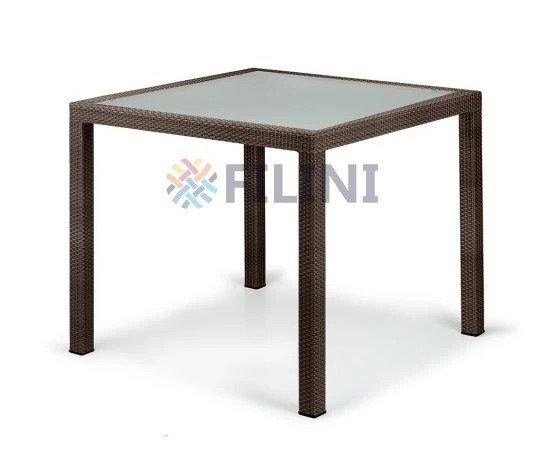 Плетеный обеденный квадратный стол из искусственного ротанга для уличного кафе, ресторана, дачи или террасы, на металлическом подстолье.