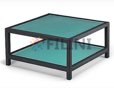 Изящный журнальный столик из искусственного ротанга со стеклянной столешницей.