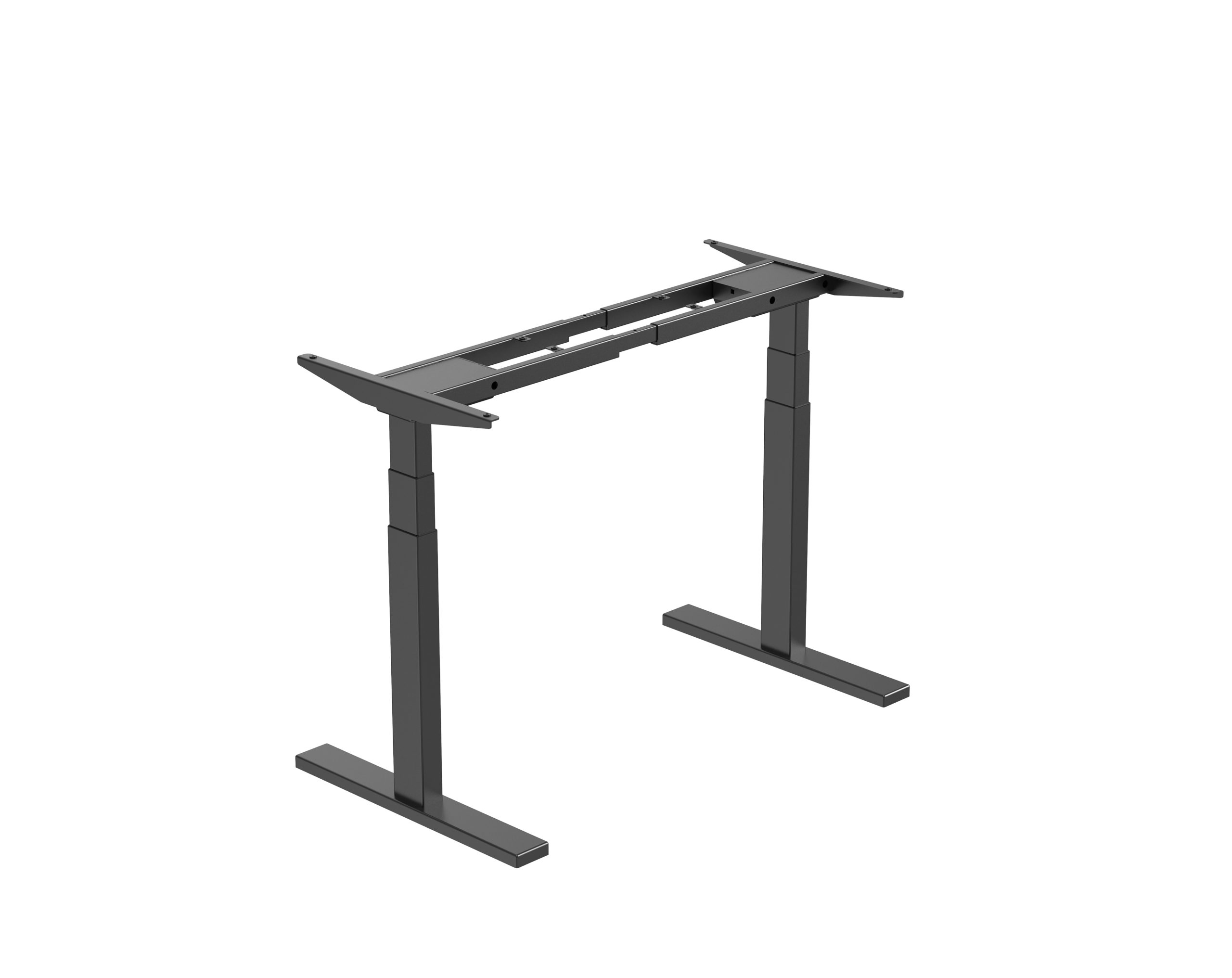 У данной модели 2 независимых мотора в каждой из опор. В базовой комплектации присутствует сенсорный пульт запоминания высоты на 2 положения. Каждая опора стола состоит из 3-ех сегментов. По высоте механизм стола регулируется от 62 до 128 см., и раздвигается по длине в диапазоне от 100см до 150 см. Рама стола выдерживает нагрузку до 125 кг. Модель включает в себя защитные режимы: система защиты от зажима при опускании и поднятии стола, защита от перегрузки.