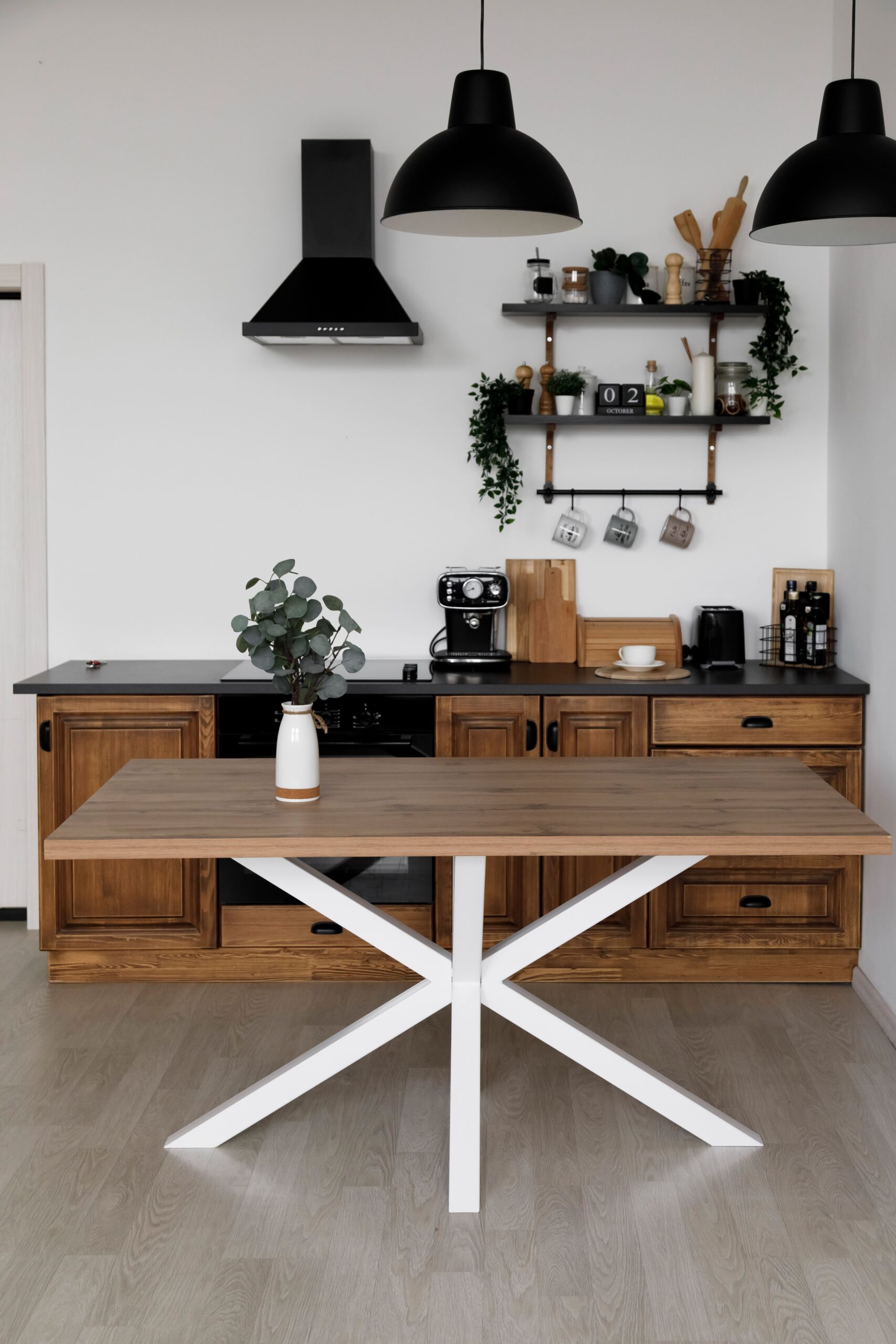 Данная модель разборного металлического подстолья подходит для больших прямоугольных кухонных столов в стиле Лофт.