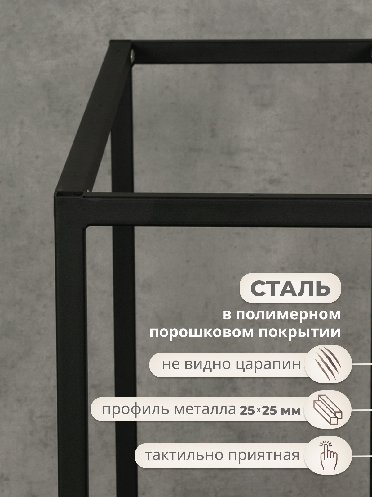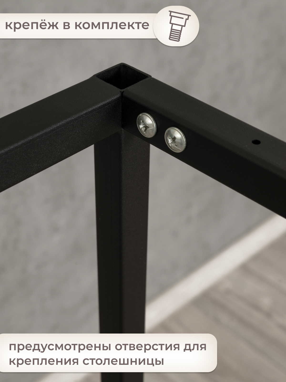 Полимерное покрытие подстолья — устойчиво к воде, царапинам и появлению ржавчины. На ножках имеются пластиковые заглушки, которые защищают пол от царапин и черных следов. Подстолье лофт имеет удобные монтажные отверстиями (4,5 мм). Металлические опоры прекрасно смотрятся в комбинации с другими материалами (дерево, камень, пластик, стекло). Ножки металлические обычно используют в общественных местах, таких как кафе, рестораны и бары, но также могут быть использованы для создания домашних столов на кухню, балкон или в гостиную.
