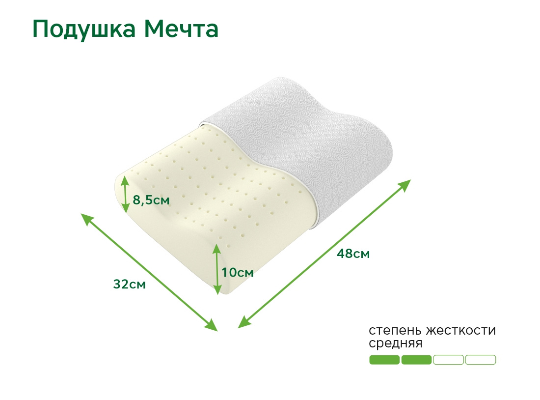Размер подушки (ШxД): 40x70 см. Memory Latex (латексная пена с памятью формы)