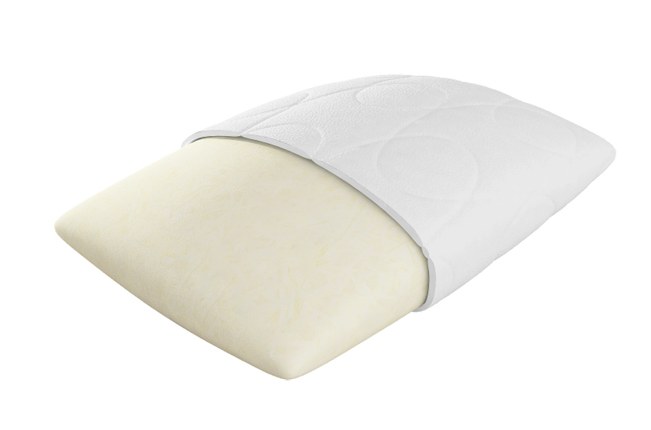 Подушка классической формы с наполнителем из слайсов (небольших кусочков) латекса. В отличие от пухо-перовых аналогов, она более упругая и лучше держит форму.