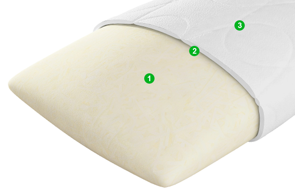 - латексные слайсы обеспечивают мягкую упругую поддержку, наполнитель подушки не сбивается;