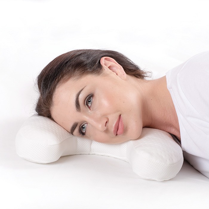 Уникальная X-образная форма позволяет минимизировать контакт лица с подушкой. Легко опираясь на боковые лучи подушки, лицо будто бы парит в воздухе. Такое расположение головы помогает коже лица лучше дышать, сохраняя молодость и упругость.