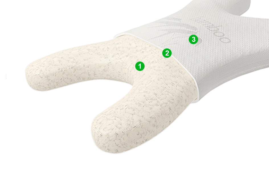 Подушка помещена в чехол из нежной и гладкой на ощупь ткани Bamboo, изготовленной с использованием натуральных бамбуковых волокон. Боковая сторона чехла выполнена из аэраторной 3D-сетки, обеспечивающей свободную циркуляцию воздуха.