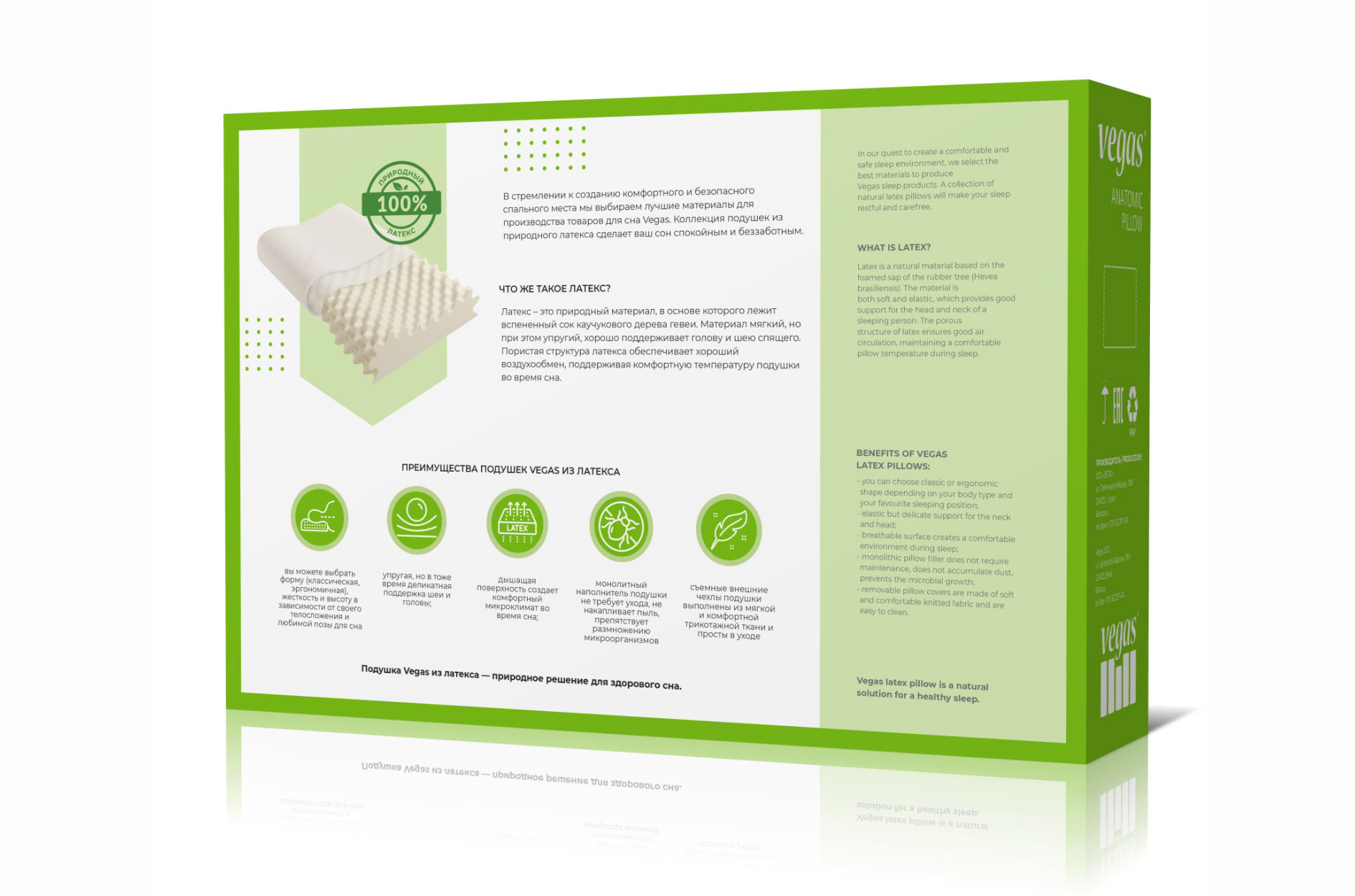 Размер (ДхШхВ): 60х37х10/12 см. Подушка из природного латекса с приятным массажным эффектом.