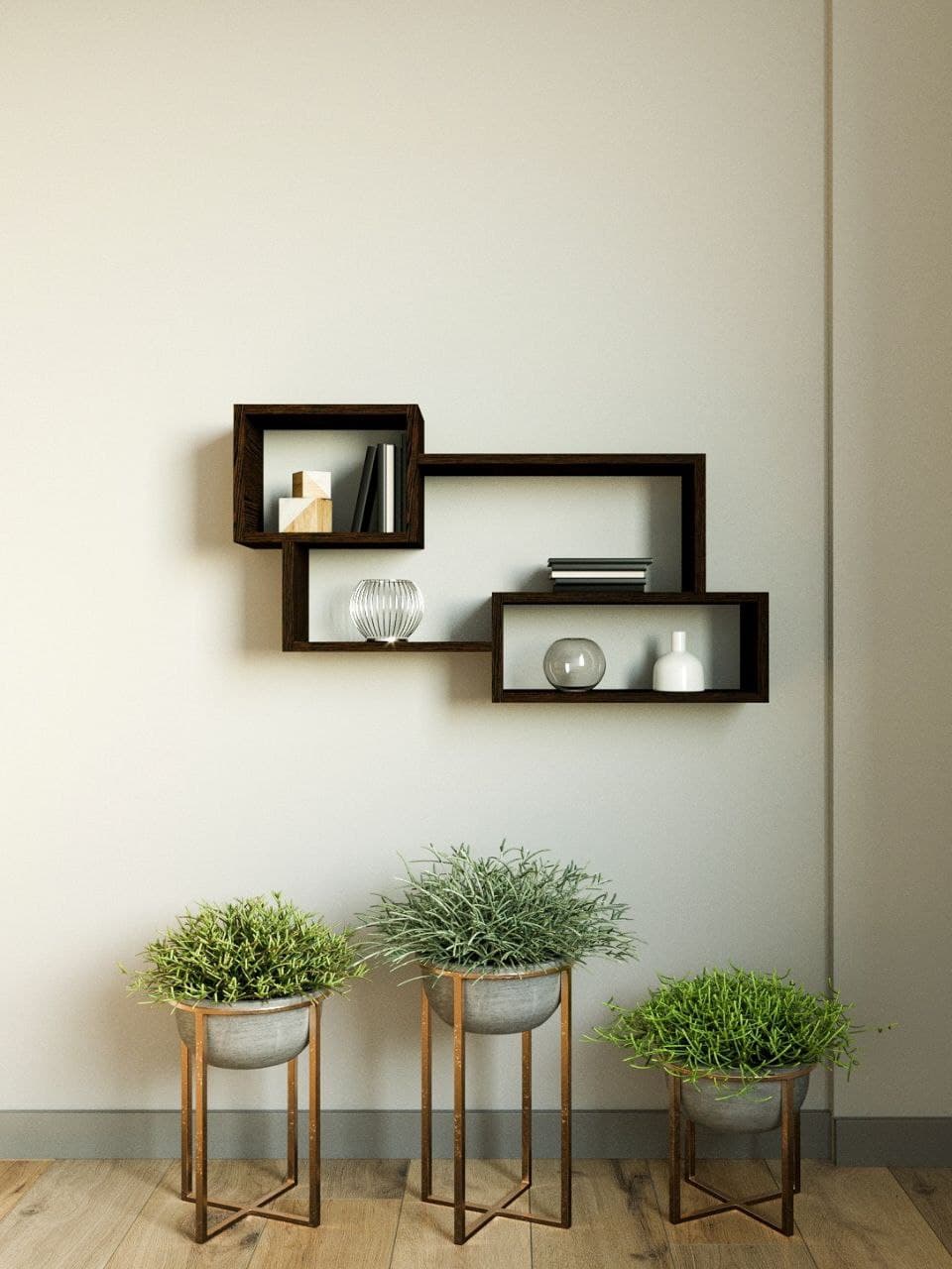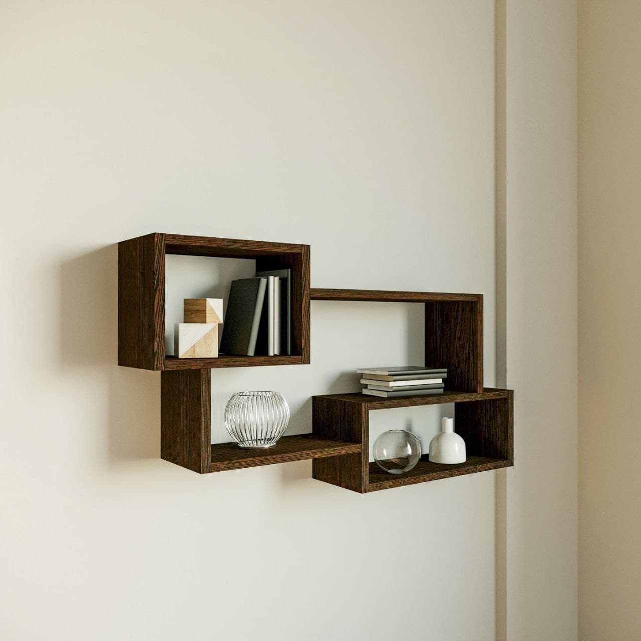 Трехуровневая настенная полка в цвете венге. Глубина: 180 мм.