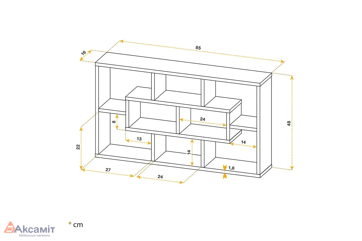 - Полочка открытая и имеет много места для книг или аксессуаров.