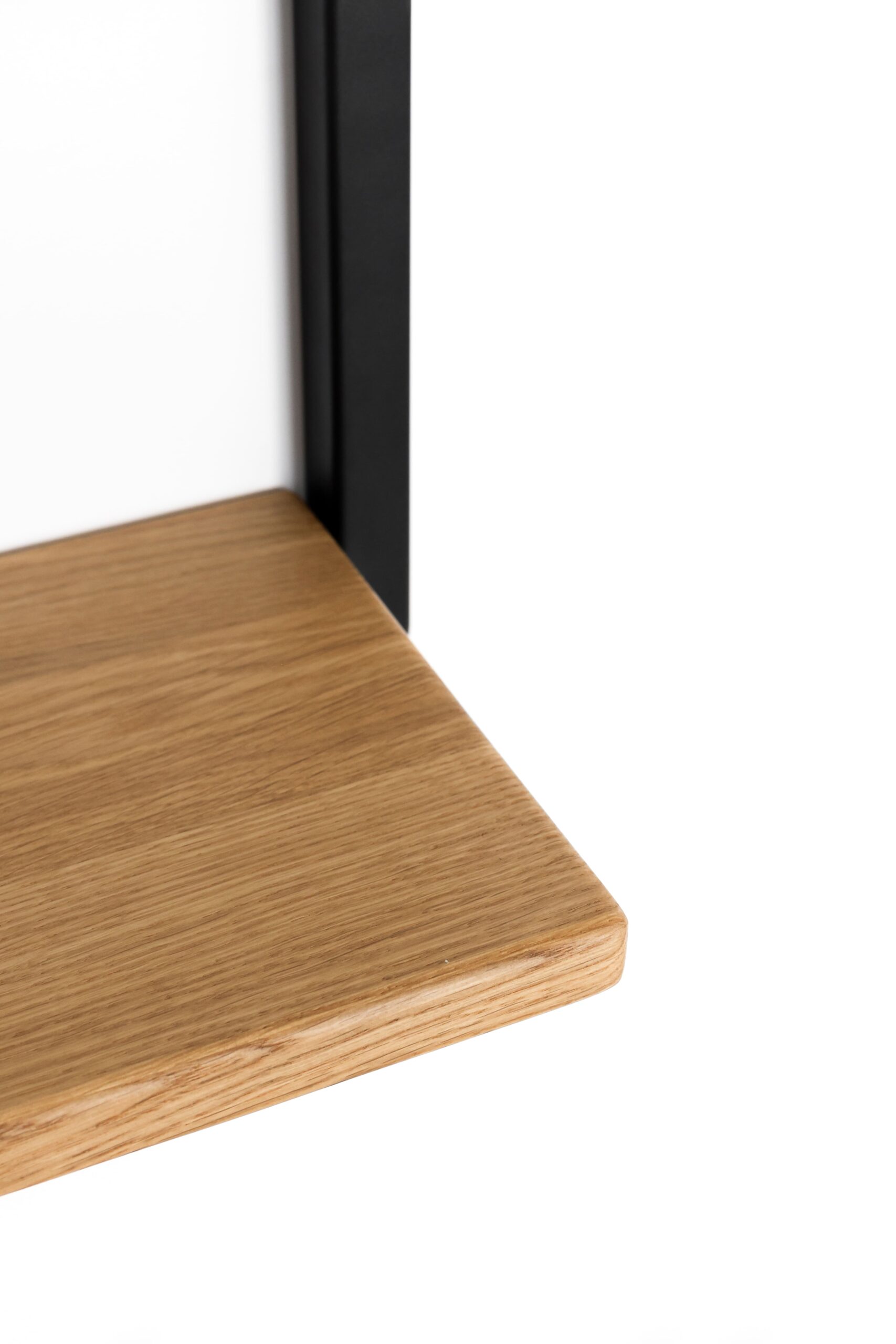 Полимерное покрытие каркаса — устойчиво к воде, царапинам и появлению ржавчины. Полка изготовлена из массива дуба толщиной 20 мм, покрыто итальянским маслом и защитным слоем воска, которые предотвращают дерево от дефектов.
