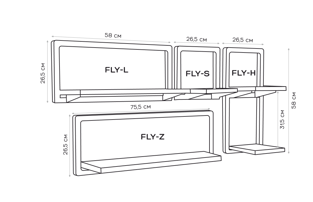 Полка настенная 70х26.5 см «FLY- BZ» (черный, черный)
