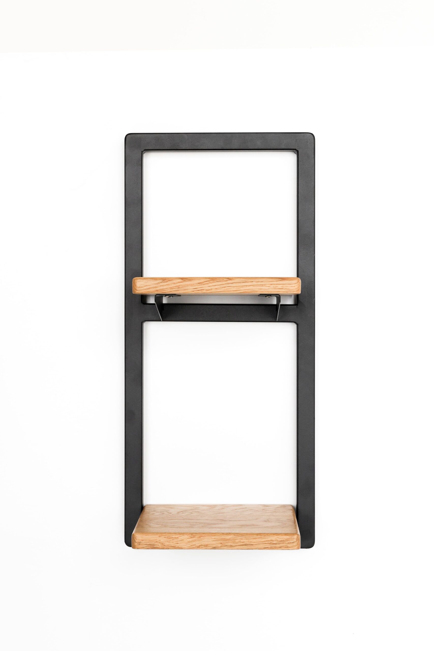 Металлическая настенная полка из массива дуба для прихожей — это отличный выбор для тех, кто ценит практичность и стильный дизайн.