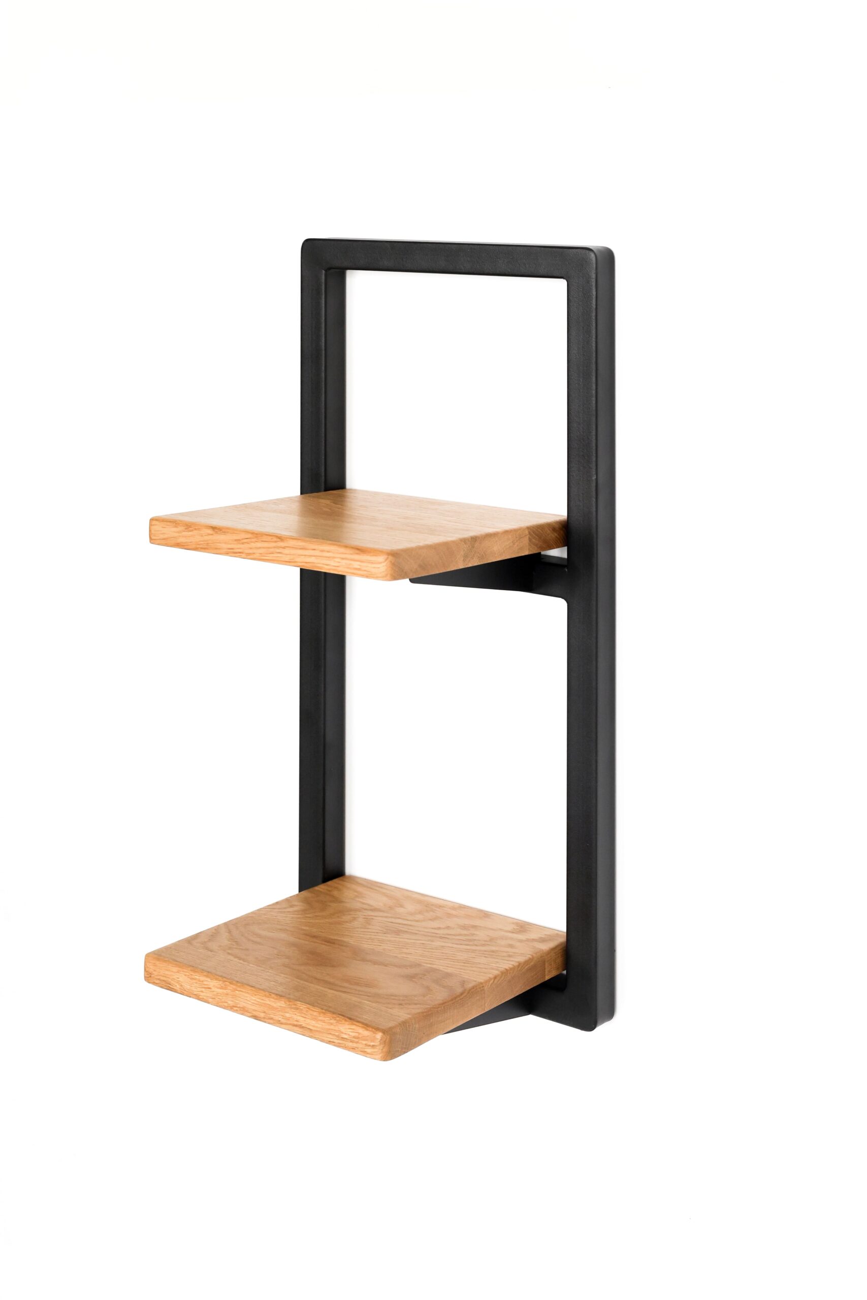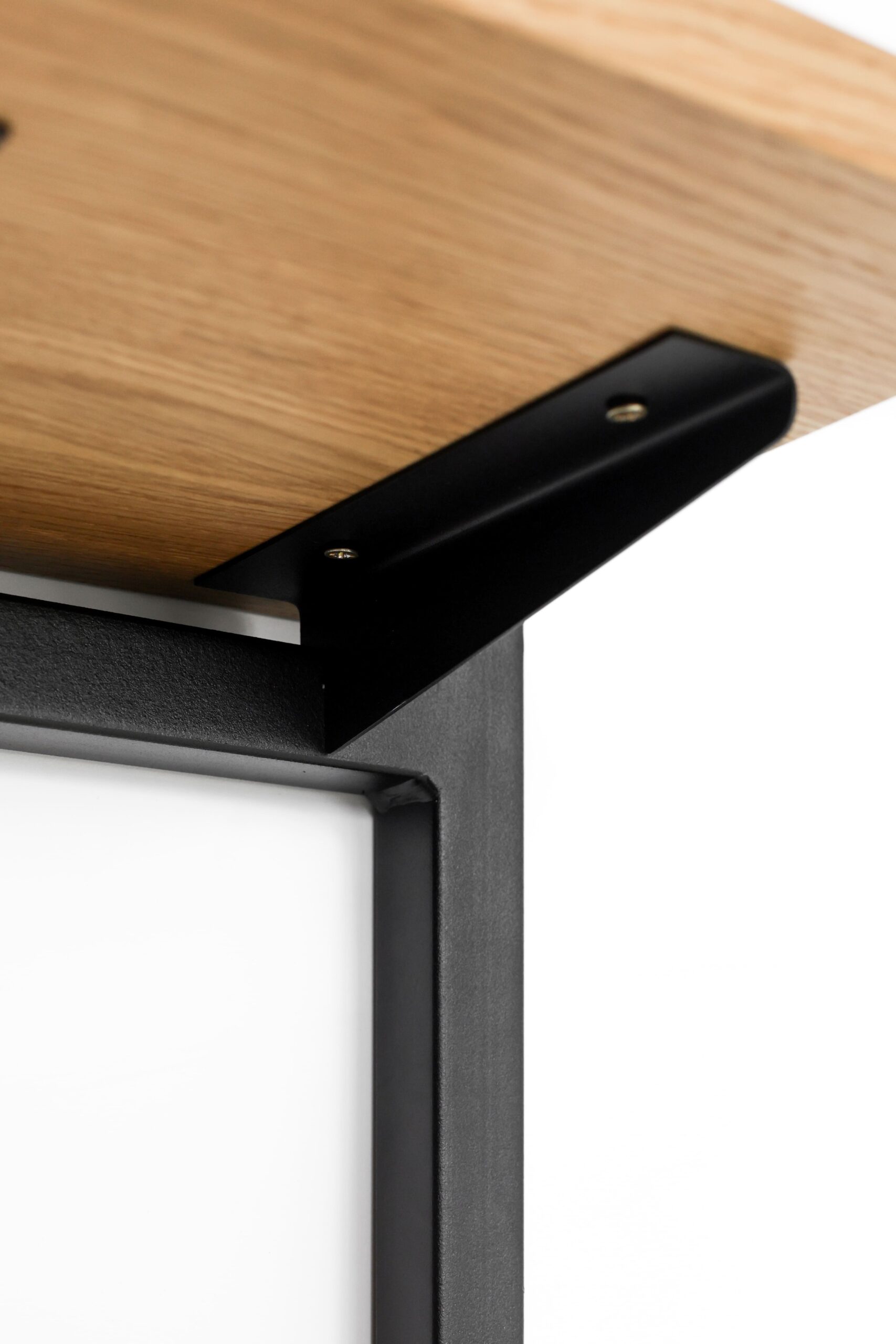 Полимерное покрытие каркаса — устойчиво к воде, царапинам и появлению ржавчины. Полка изготовлена из массива дуба толщиной 20 мм, покрыто итальянским маслом и защитным слоем воска, которые предотвращают дерево от дефектов.