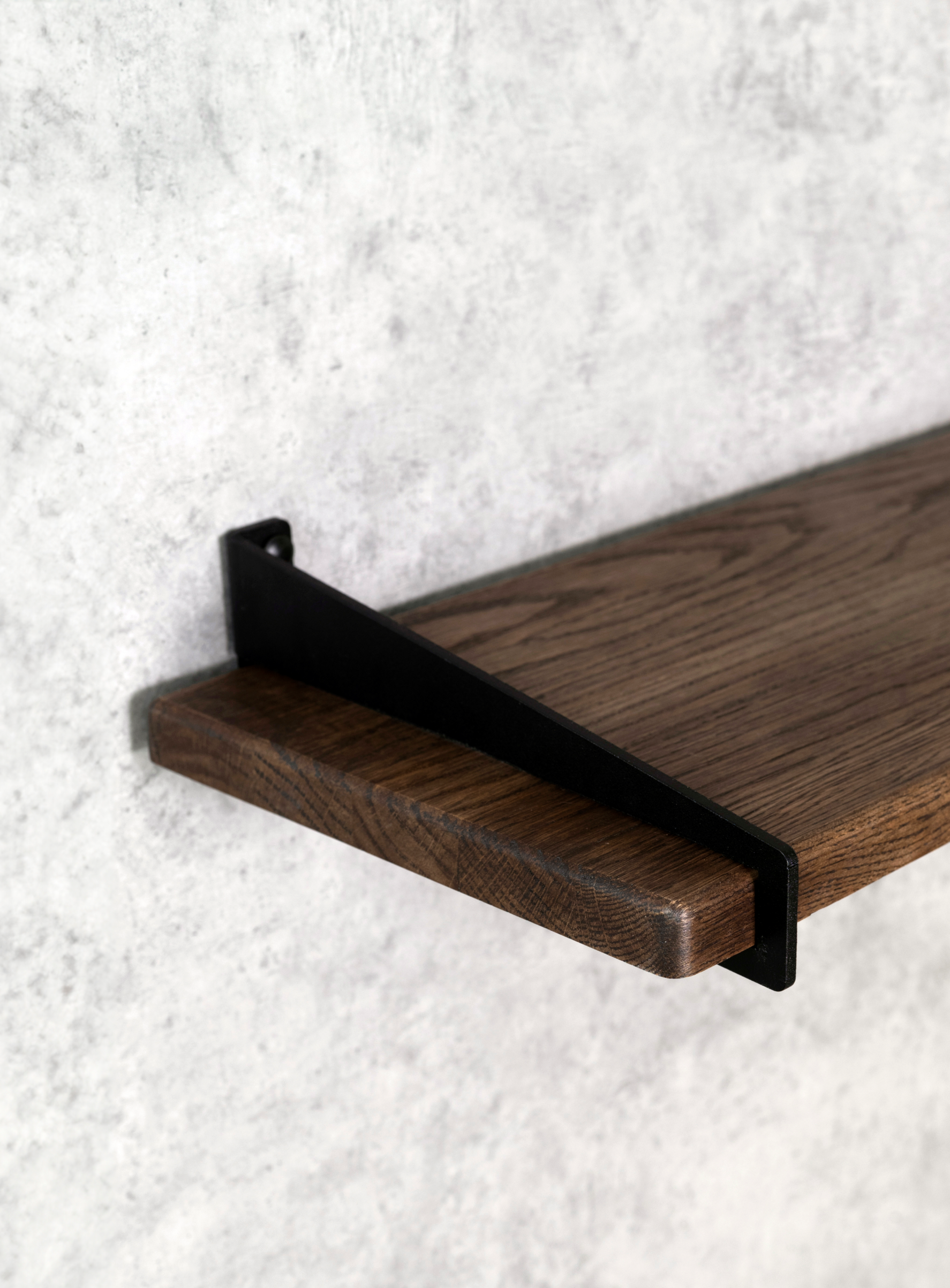 Металлические кронштейны выполнены из высококачественной стали в полимерном покрытии, которое предохраняет изделие от ржавчины. Приятное матовое покрытие — стойкое к воде и царапинам. Полка изготовлена из массива дуба толщиной 20 мм, покрыто итальянским маслом и защитным слоем воска, которые предотвращают дерево от дефектов.