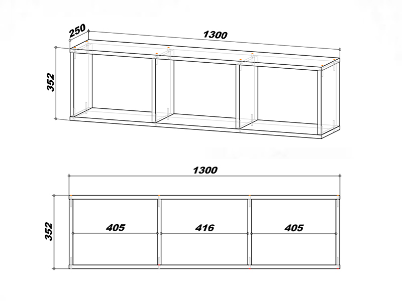 Размер: 1300х352х250 мм. Материал: ЛДСП.