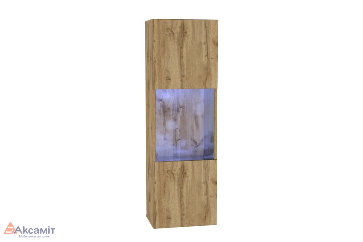 Шкаф-витрина с подсветкой Поинт придется по вкусу тем, кто хочет создать в комнате практичную и уютную обстановку. Благодаря стильному дизайну модель органично впишется в любой интерьер. За створкой с прозрачным элементом находятся две стеклополки.
