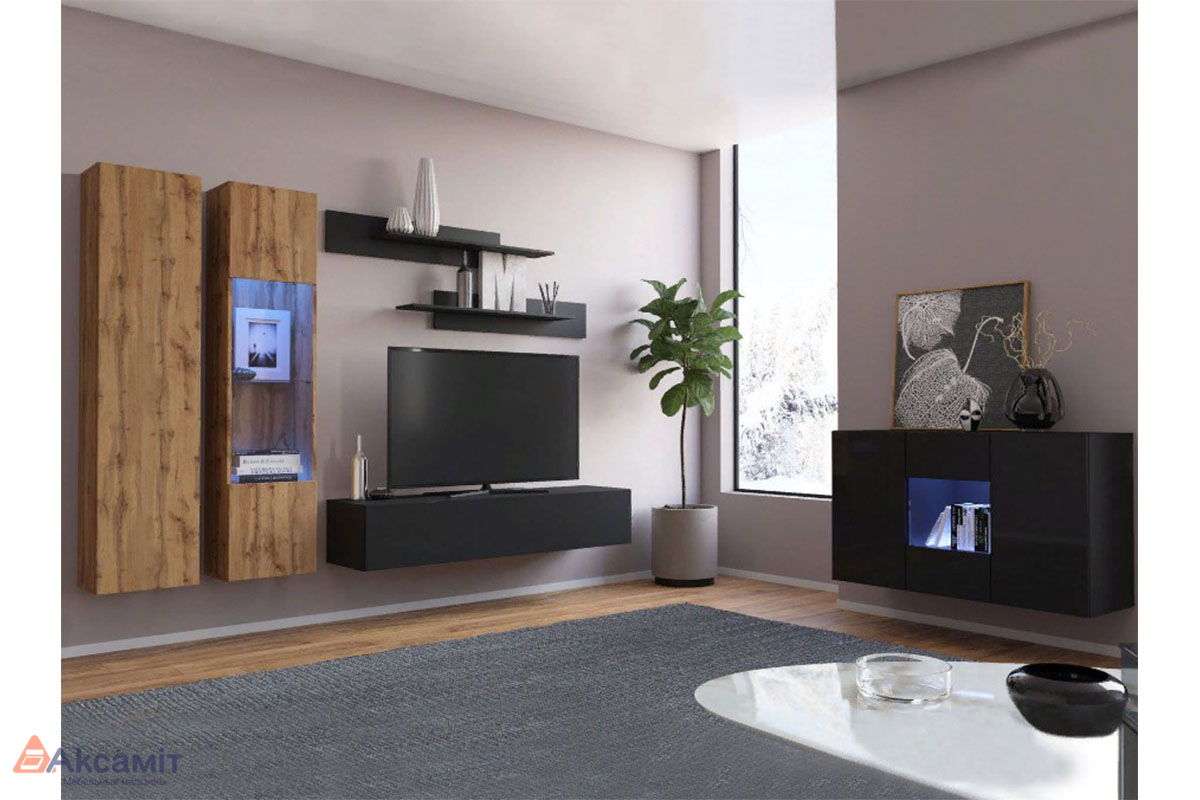Шкаф-витрина с подсветкой Поинт — отличный способ организовать практичную систему хранения даже на небольшой площади. По центру фасад имеет прозрачный элемент, что позволит использовать модель не только для книг или одежды, но и в качестве витрины для презентации красивой посуды или памятных сувениров.