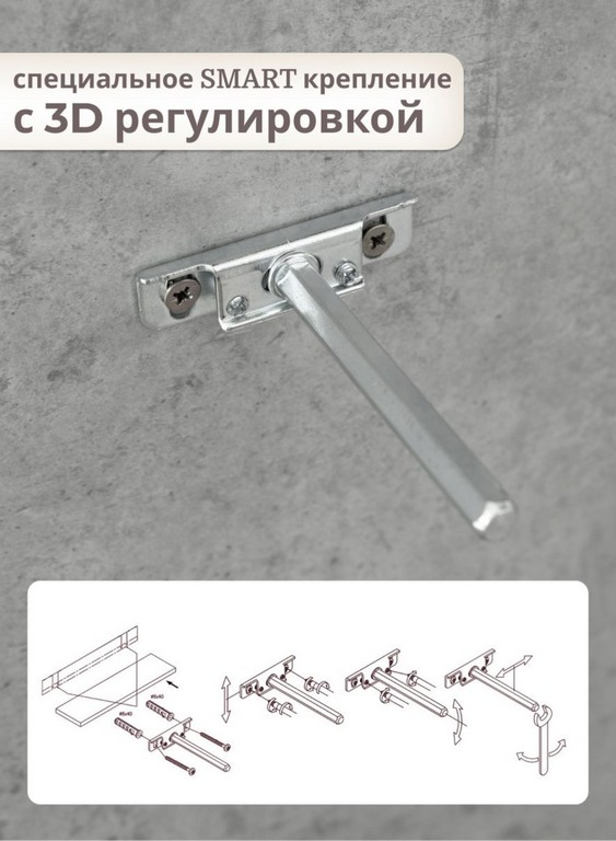 Важно! Полка поставляется в разобранном виде — необходимо прикрутить держатель для бокалов и установить СМАРТ-крепления.