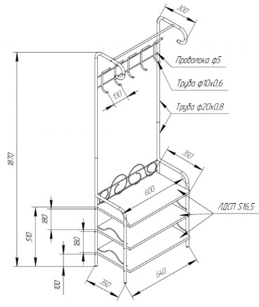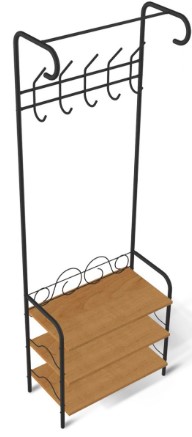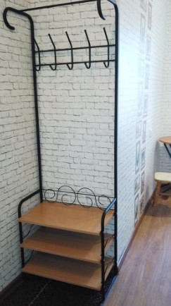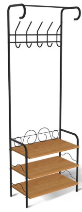 Компактная классическая прихожая подойдет как для маленьких помещений в квартире, так и для больших холлов. Прихожая состоит из крючков для верхней одежды, зонтов и сумок, а также трех полок для обуви. Каркас прихожей выполнен из металла, который покрыт специальным порошковым покрытием устойчивым к механическим повреждениям. Расстояние между полок 18 см. Максимальная нагрузка на полки 10 кг, на крючки 5 кг.