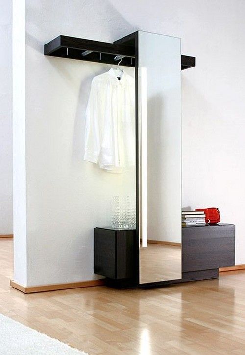 Тумба обувная с открытыми отделениями для принадлежностей и панель с крючками.
