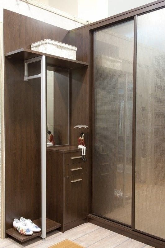 Состоит из отдельностоящих модулей: шкафа+ вешалки+ зеркала и обувниц.