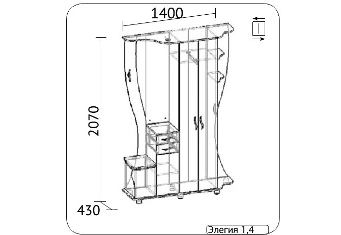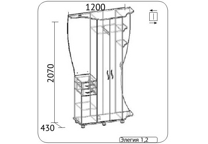 Имеются различные варианты исполнения прихожий: правый и левый.