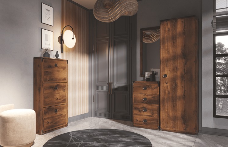 Нетривиальное сочетание классики и скандинавских мотивов в графитовом исполнении. Материал: ЛДСП, МДФ.