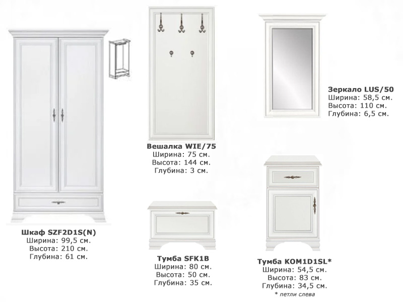 В комплект входит пенал с ящиками и вешалка с обувницей.