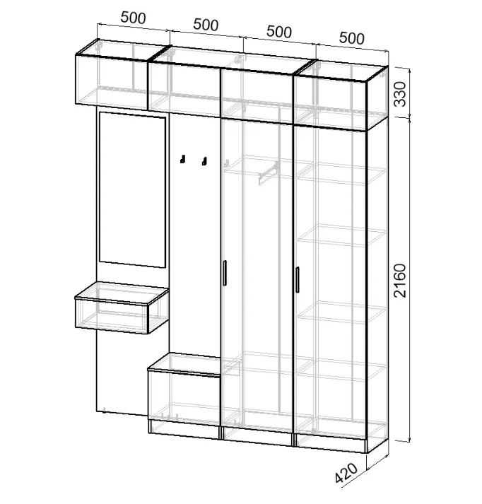 Размеры (ВхШхГ): 2160*2000*420 мм.