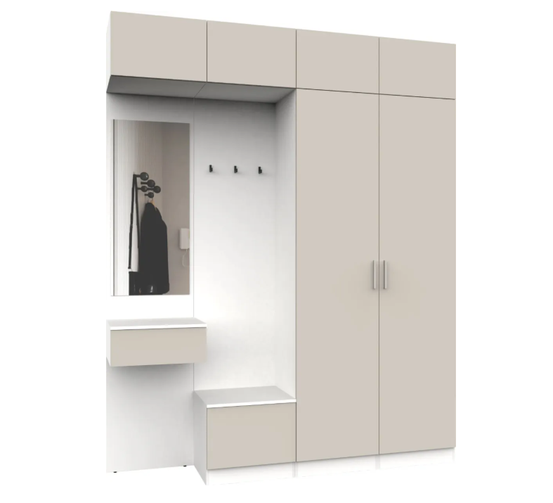 Полки, крючки, выдвижная вешалка . Ширина 100 (50+50) см