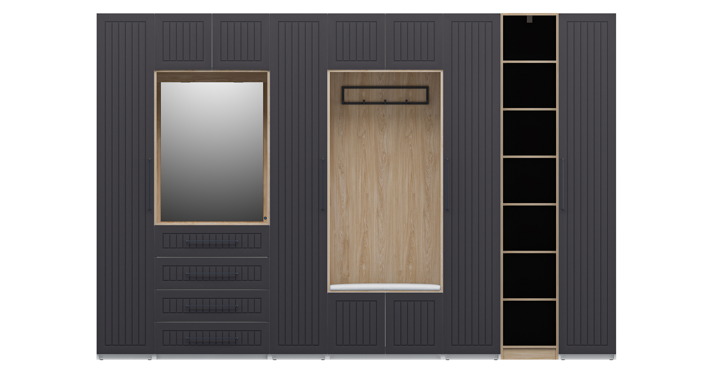 Размер (ШхГхВ): 1900х510х2236 мм. Материал: ЛДСП, зеркало.