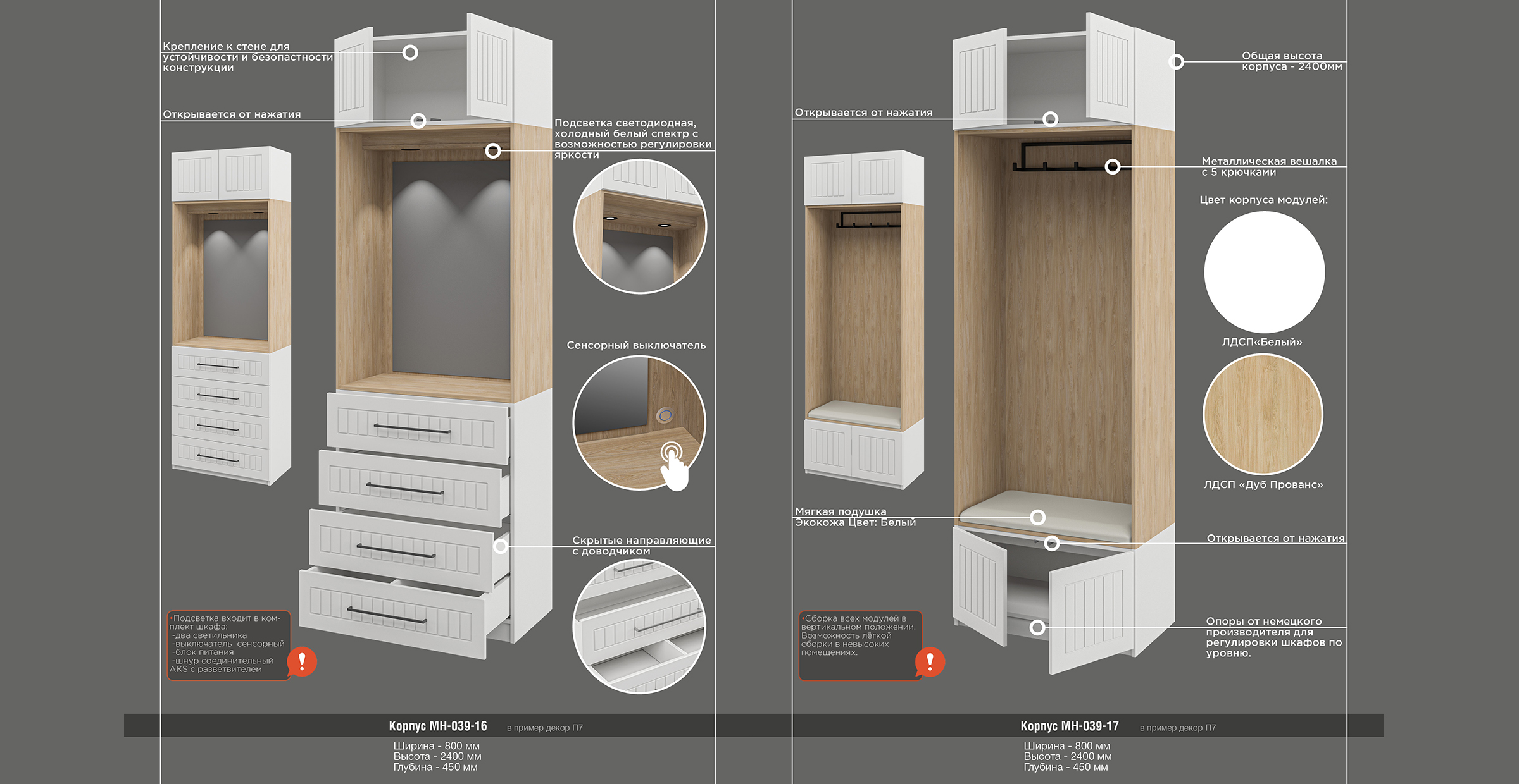 *Фасады на выбор: ЛДСП (белый, графит, дуб прованс) / МДФ с фрезеровкой (белый, графит, дуб прованс, крем) / покраска по RAL