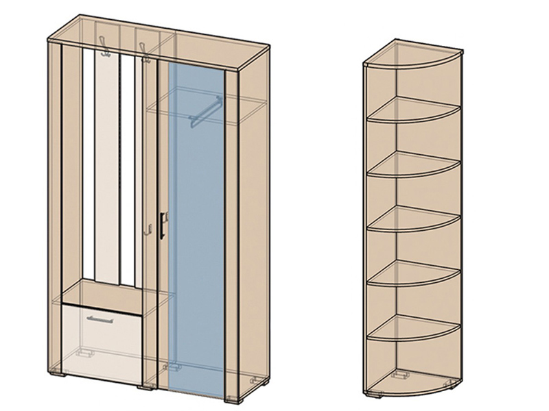 - Шкаф с зеркалом и вешалкой КЛ-014 (правый); ШхВхГ: 117х202х42,5 см.