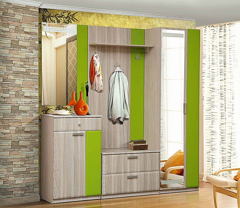 Модульная прихожая из ЛДСП в теплой древесной расцветке.