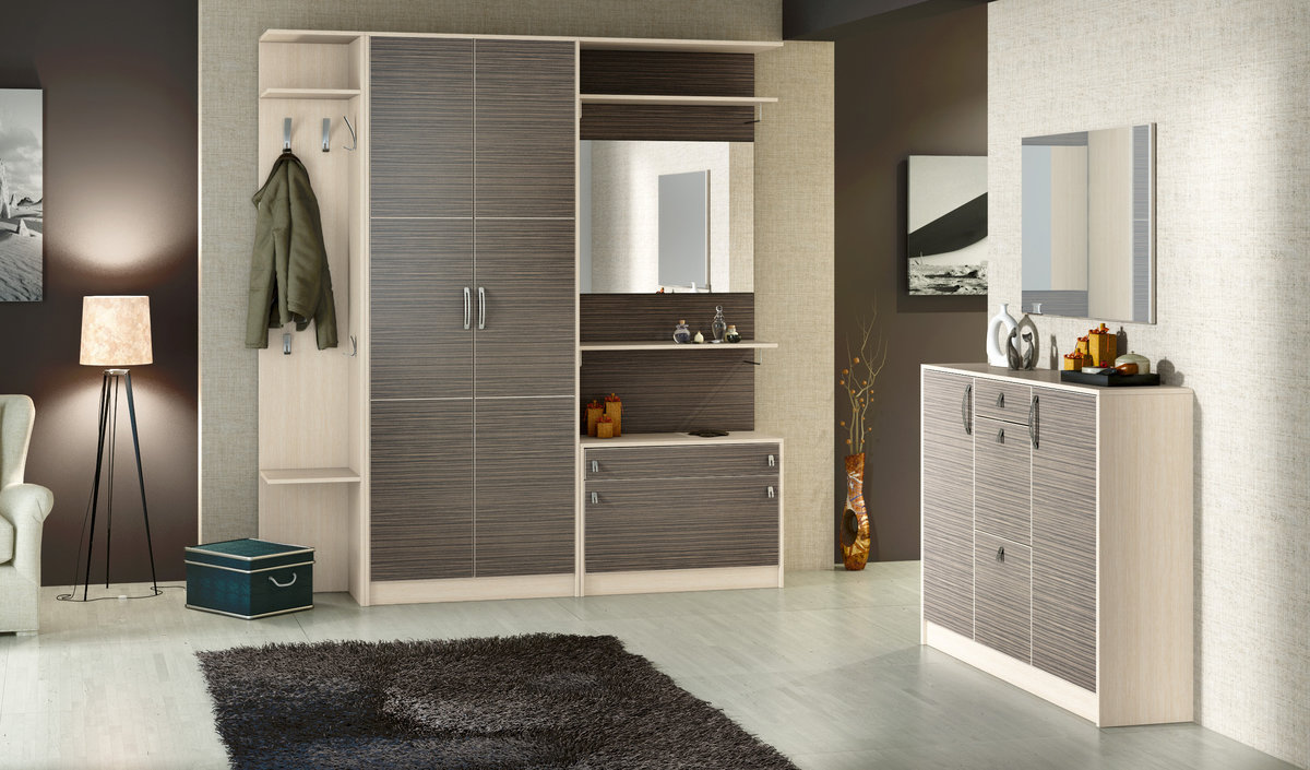 В линейку входит вешалка с тумбой, зеркало навесное, зеркало с декором, тумба, тумба для обуви, шкаф, шкаф угловой.