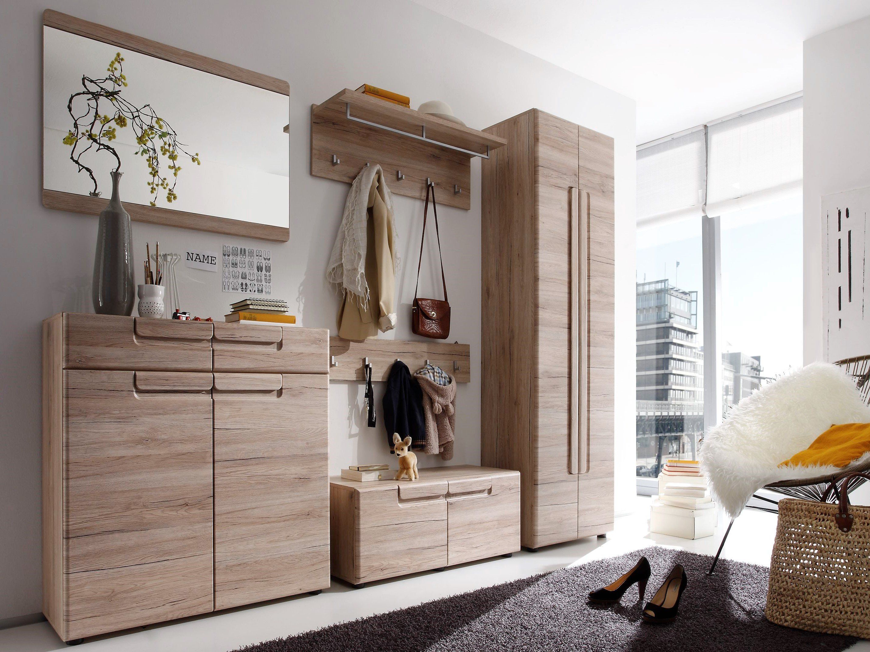 В конструкции прихожей: зеркало, вешалка, шкаф, зоны для хранения.