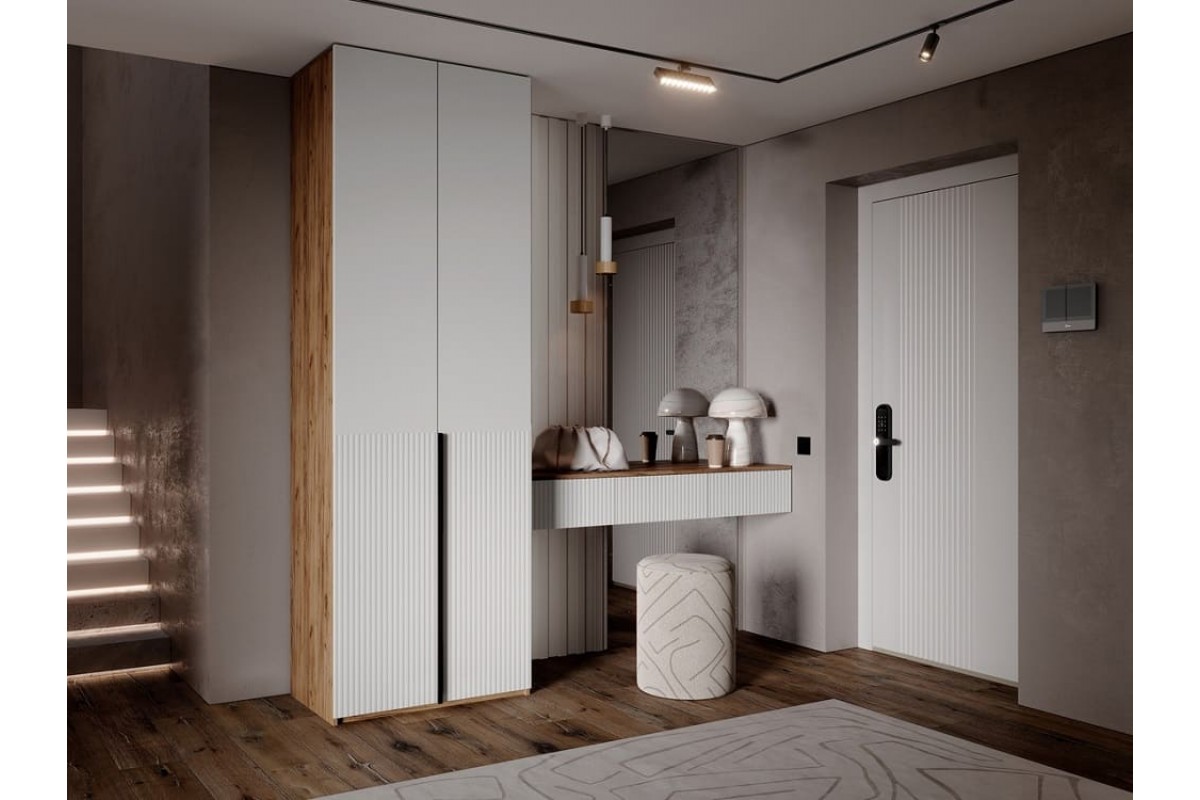 Набор в прихожую «Марвэл» Шкаф 2-х ств и Полка косметическая (Браш Вайт - Дуб Крафт Золотой)