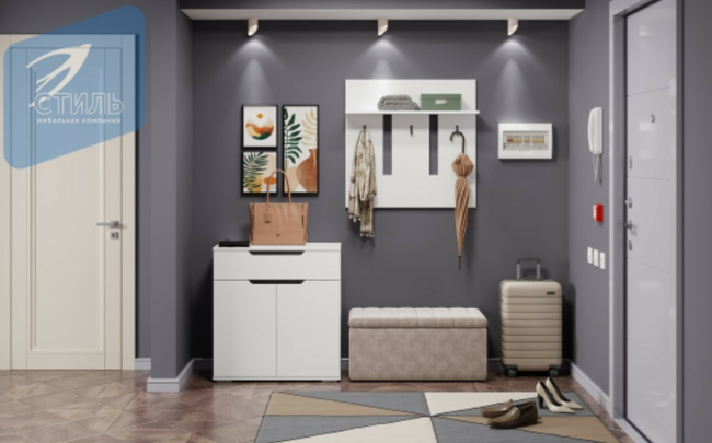 Набор в прихожую «Вешалка Лайт ВШ-001 и Лайт Комод КМ-002» Белый гладкий